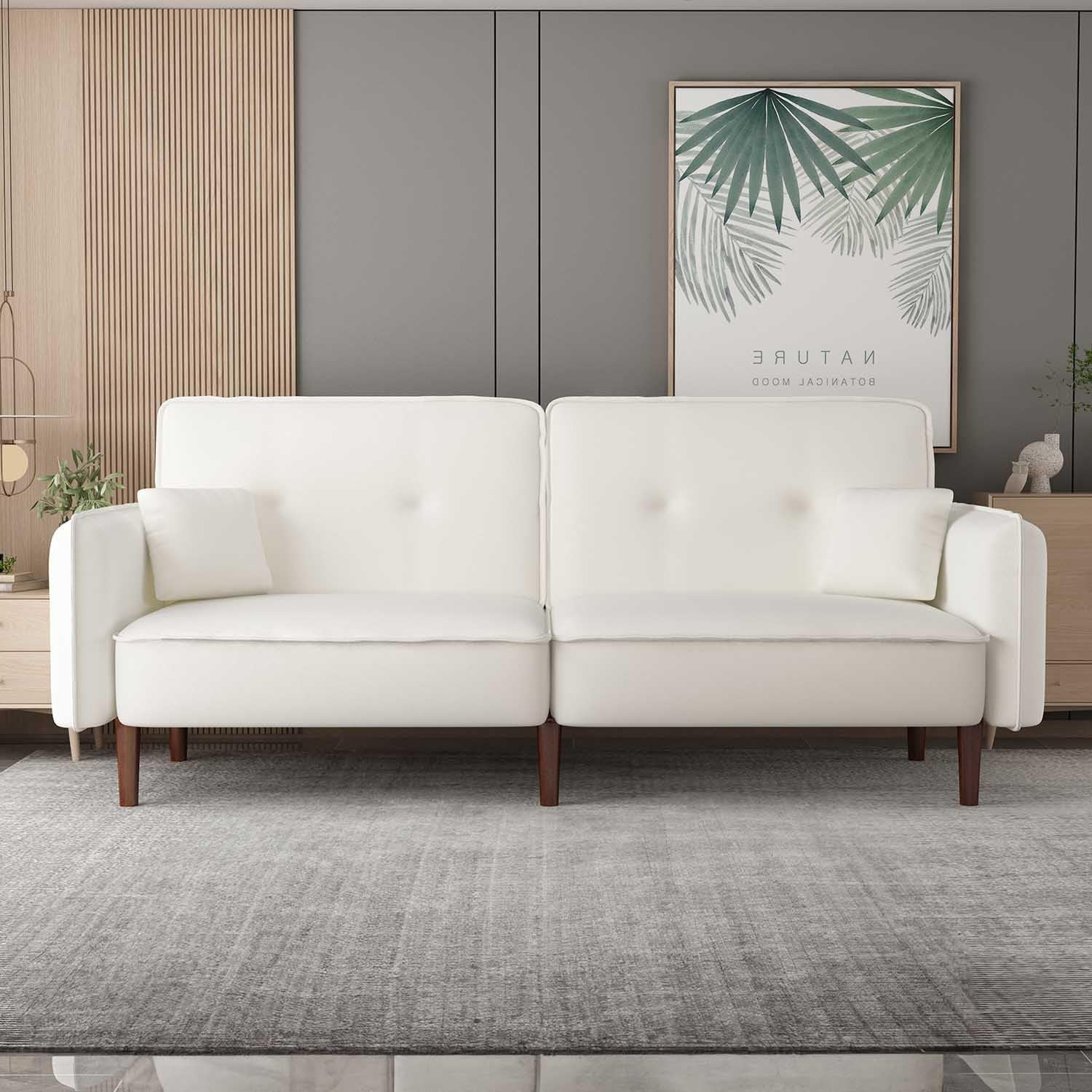 75”Loveseat Futon, Convertible Velvet Sofa Bed, Modern Sleeper Couch with Wood Legs, Folding Upholstered Recliner Sofa, Memory Foam Living Seat for Apartment/Office (Pink)(Pink)