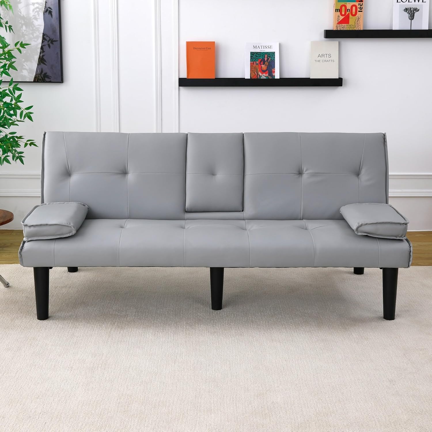 Comment on "Modern Convertible Futon Sofa Bed, 3-Position Folding Couch with 2 Cup Holders & Detachable Armrests, PU Leather Multi-Functional Sleeper for Living Space, Workspace, Dormitory (Black)(Black)"