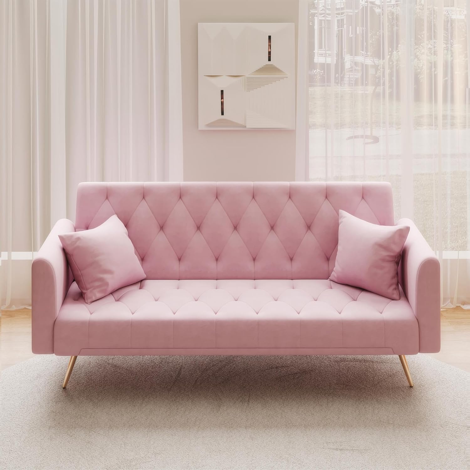 Comment on "Modern Velvet Sofa Bed Futon with 2 Pillows,2-in 1 Convertible Sleeper Couch Bed,Folding Recliner Loveseat with Golden Metal Legs for Living Room Apartment Office (Pink)(Dark Grey)"