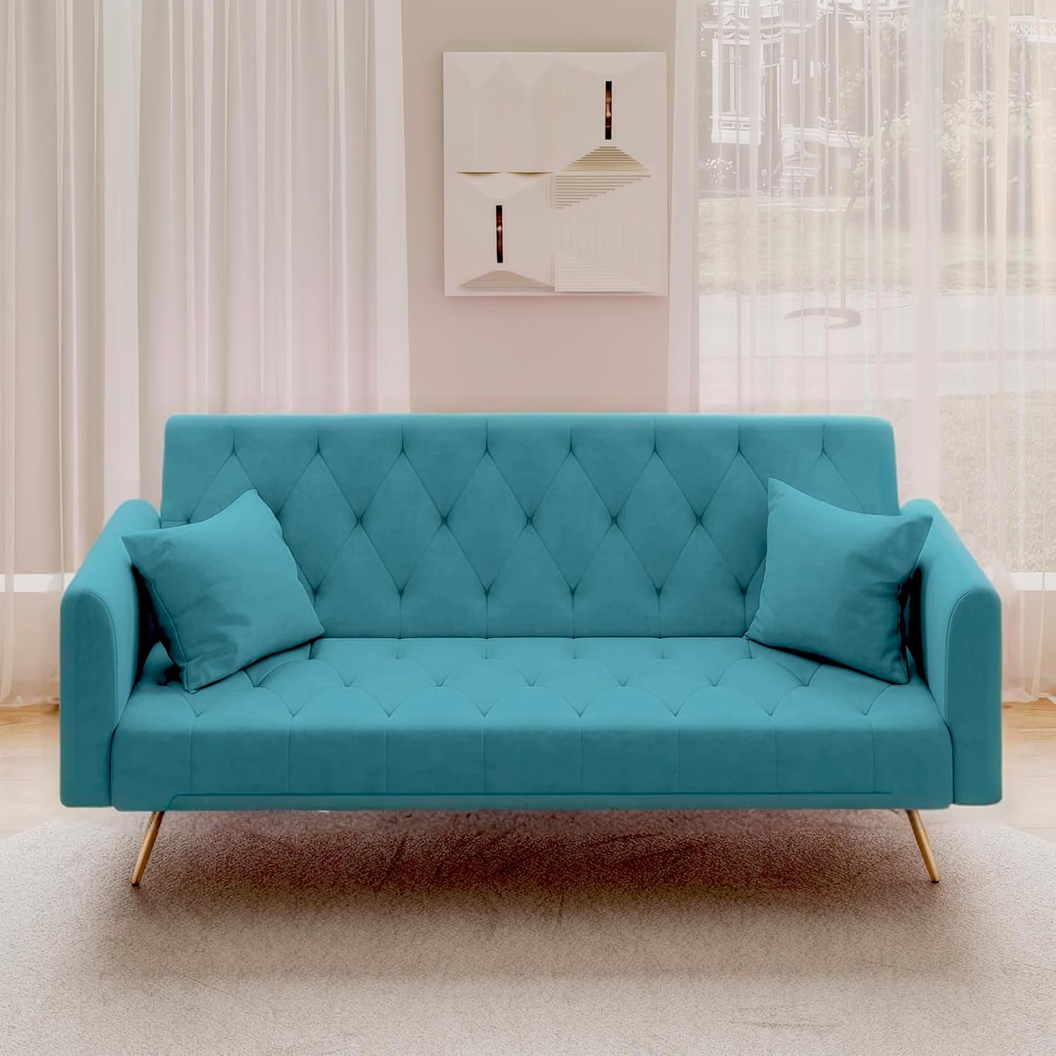 ❤ Modern Elegant Design:Our sofa bed durably crafted with popular tufted velvet,chiseled beveled back,tight square arms,Its rhombus line is simple but retro,and the golden metal legs make it looks unique,add more comfort and contemporary style to your living room.